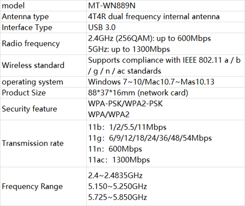 MT-WN889N Product parameters: